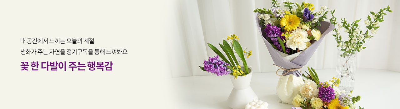 알록달록 예쁜 색감이 집안을 환하게 밝혀 주고, 짧게 봐도 오래 봐도 기분이 좋아지는 꽃! 삭막한 집안에 꽃 한 송이만 놔둬도 분위기가 달라지는 데요. 하지만, 꽃집가서 사자니 바쁘고 가격이 부담스럽죠. 그래서 오늘은 편하게 꽃을 받아볼 수 있는 구독 서비스를 준비했습니다.