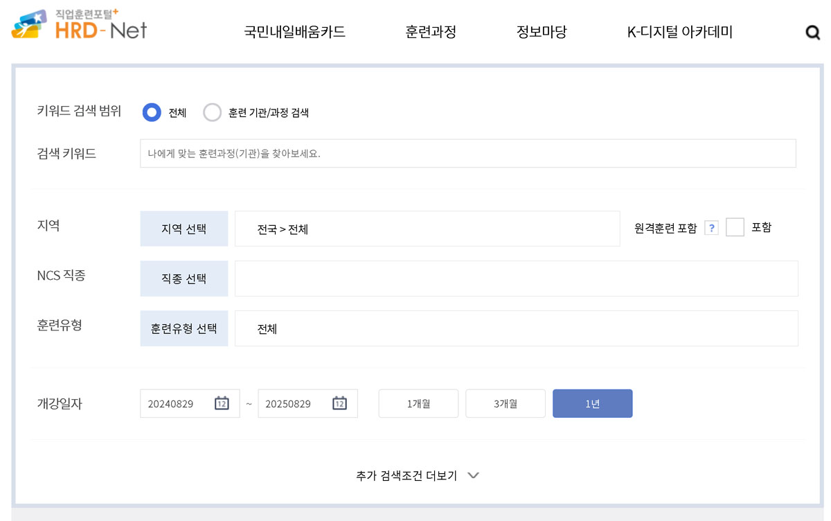 지역, 분야, 금액, 기간 등 모두 상이하기 때문에 꼼꼼히 살펴보는 것이 좋겠습니다. 특히 다양한 기관에서 여러 과정을 제공하고 있으며, 훈련 과정의 퀄리티가 일정하지 않기 때문에 나에게 맞는 훈련 과정은 무엇인지 찾는 것이 중요하겠죠?