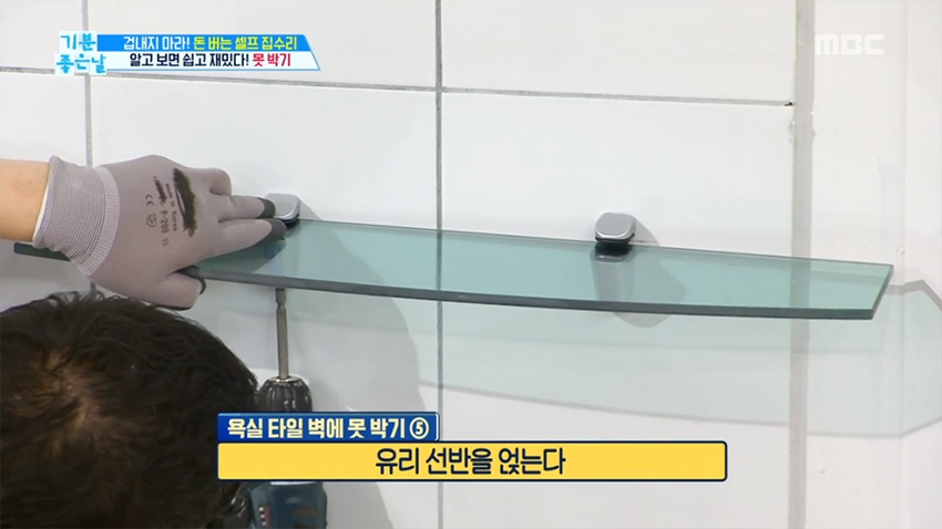 타일 벽에 못 박기
