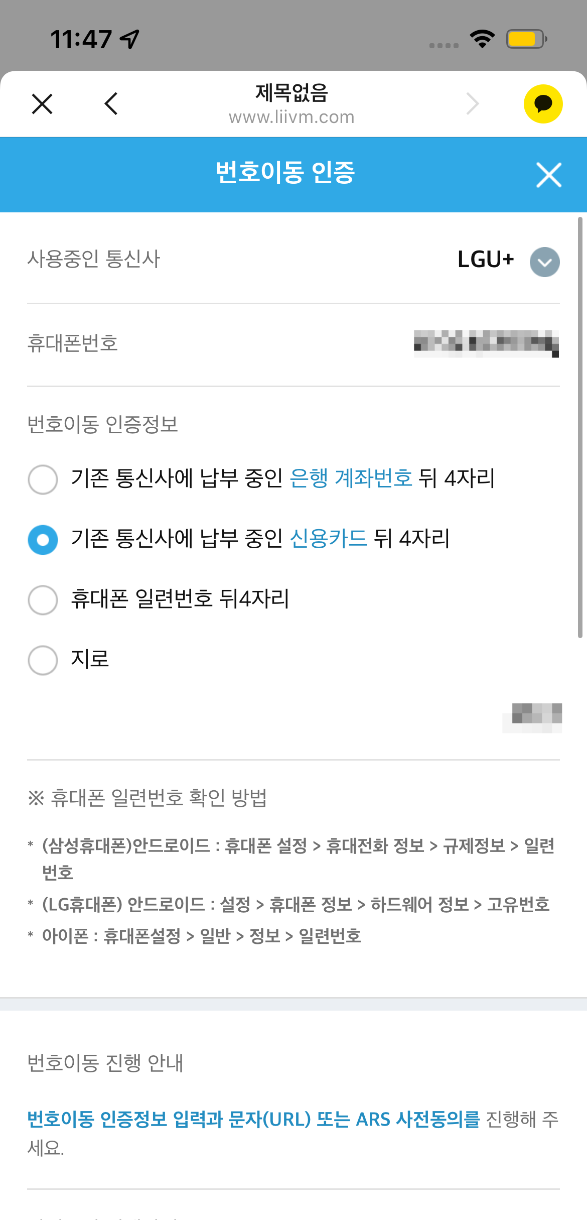 번호이동 인증정보를 입력합니다. 신용카드 분실로 카드 번호가 바뀐 것을 인지하지 못하고 조금 헤맸는데 여러분은 그런 실수하지 마시길! 인증을 마치면 유심 일련번호를 등록합니다. 그럼 개통 완료! 개통 완료 메시지를 받으면 끝이에요. 간단하죠?