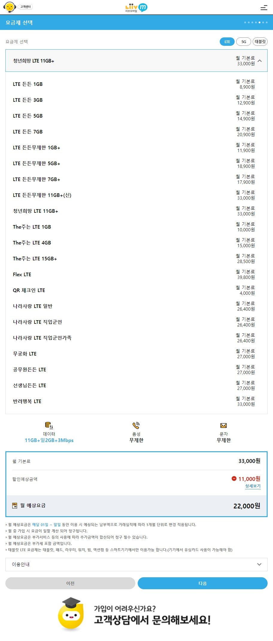 아래 링크를 통해 홈페이지에 접속하세요. 가입 유형 선택, 약관 및 개인(신용)정보 이용 동의, 본인확인, 본인이동 동의, 요금제 선택까지 설명에 따라 진행하면 됩니다. 요금제 선택에서는 사실 청년희망 요금제 대신 다른 요금제를 선택해도 돼요. LTE부터 5G 무제한 요금제까지 다~ 있더라구요.