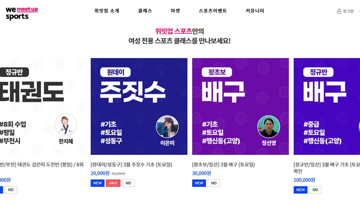 위밋업은 여성 축구선수들이 은퇴 후 의기투합해 제작한 스포츠 서비스를 제공하는 사회적 기업이에요. 오로지 여성을 위해 만들어진 플랫폼이기 때문에 부담 없이 이용할 수 있다는 장점이 있죠! 클래스 종류가 다양해 기존에 접해보지 못했던 운동에 도전해 볼 수 있다는 것이 가장 큰 장점이랍니다.