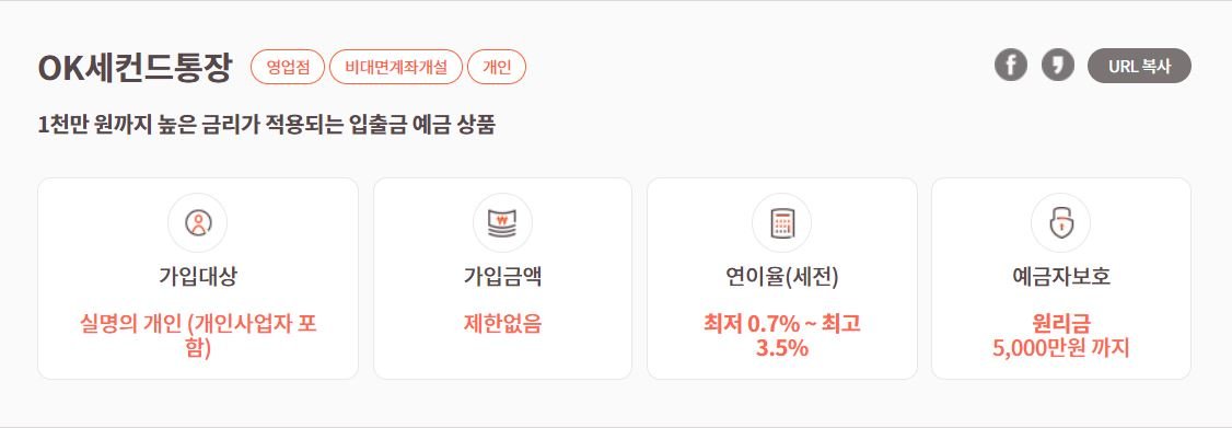 1. OK 저축은행 세컨드 통장 금리