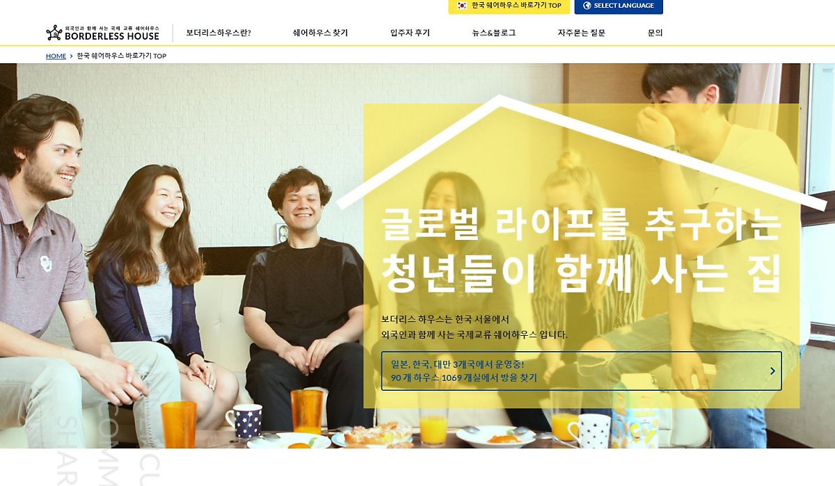 외국인과 함께 생활하는 쉐어하우스/서울 26개지점과 일본,대만 총120개지점을 운영하는 아시아 탑브랜드