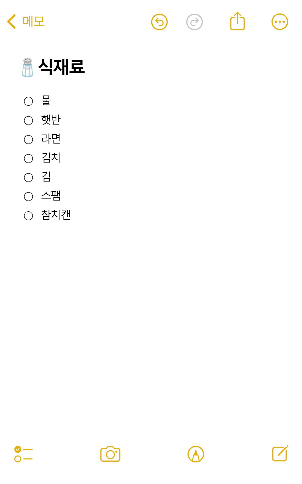 물 햇반 라면 김치 김 스팸 참치캔 |