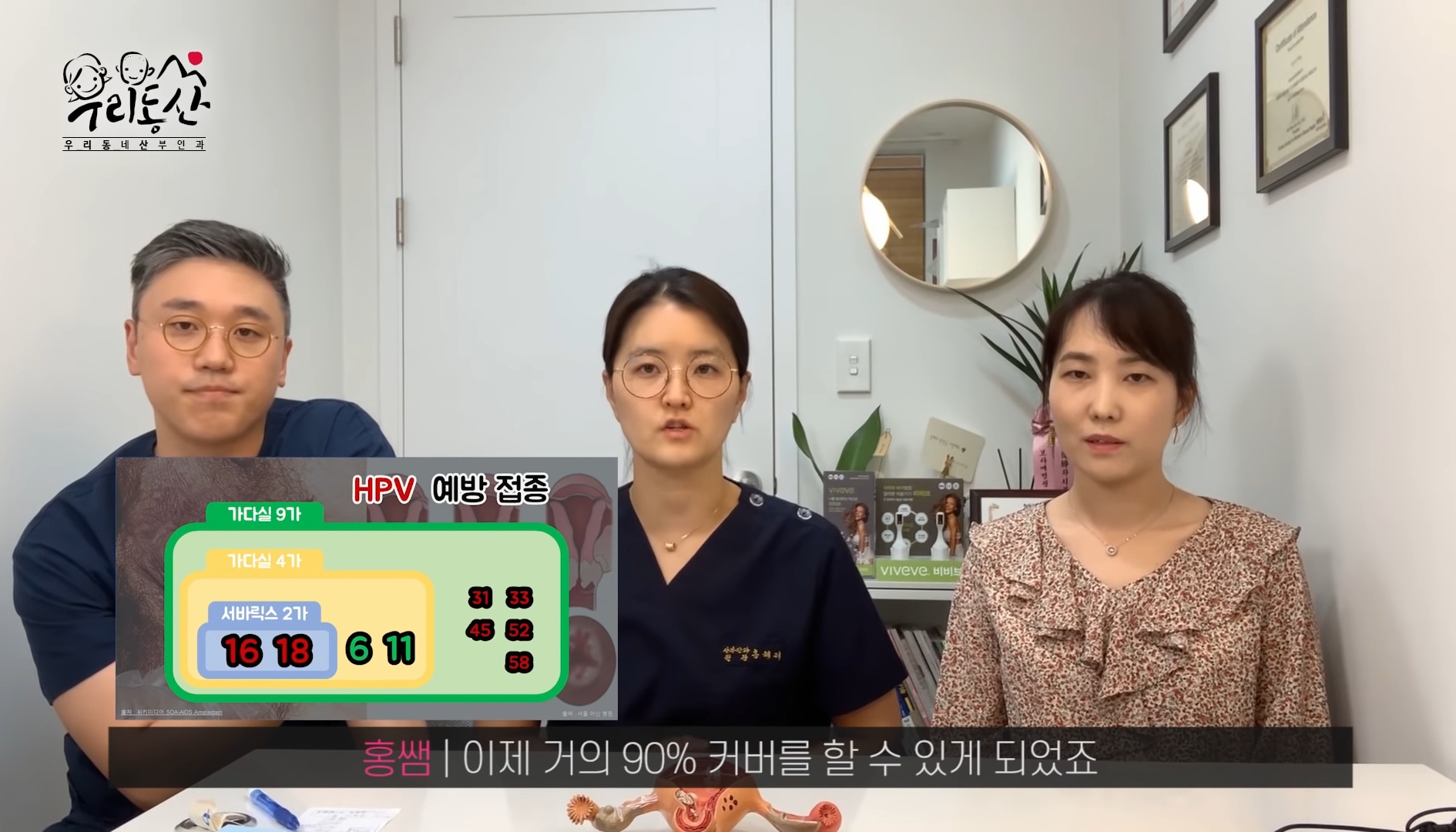 우리동산은 산부인과 의사 3명이 운영하는 채널로, 피임부터 자궁 경부암까지 너무나도 중요하지만 자세한 사항을 찾기 힘들었던 정보에 대해서 정확하고 또 유머러스하게 풀어내는 채널이에요. 아래 영상은 백신으로 예방 가능한 자궁경부암에 대한 정보를 담은 영상입니다.