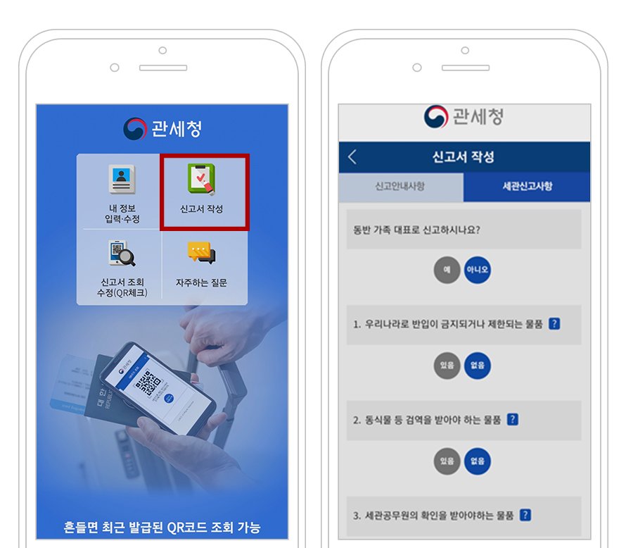 다만, 면세범위를 초과하는 물품을 반입하는 입국자들은 기존과 같은 방법으로 물품 검사와 관세 납부 절차가 이루어지는데, 물품의 내역 또한 사전 신고가 가능하므로 기존보다 통관 시간이 줄어들 거 같습니다.