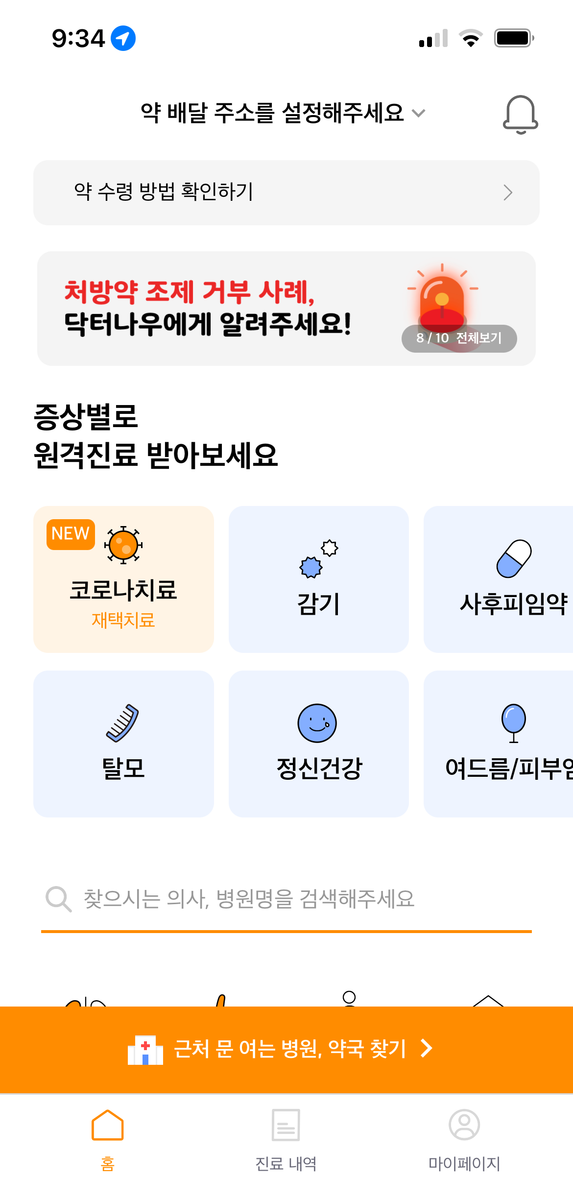 배달 진료 시 상세하게 증상을 이야기하는 것이 중요해요. 네이버에 '(지역명)코로나 비대면 진료병원' 혹은 '(지역명)전화상담진료병원'을 검색하면 협력 병원을 확인할 수 있어요.