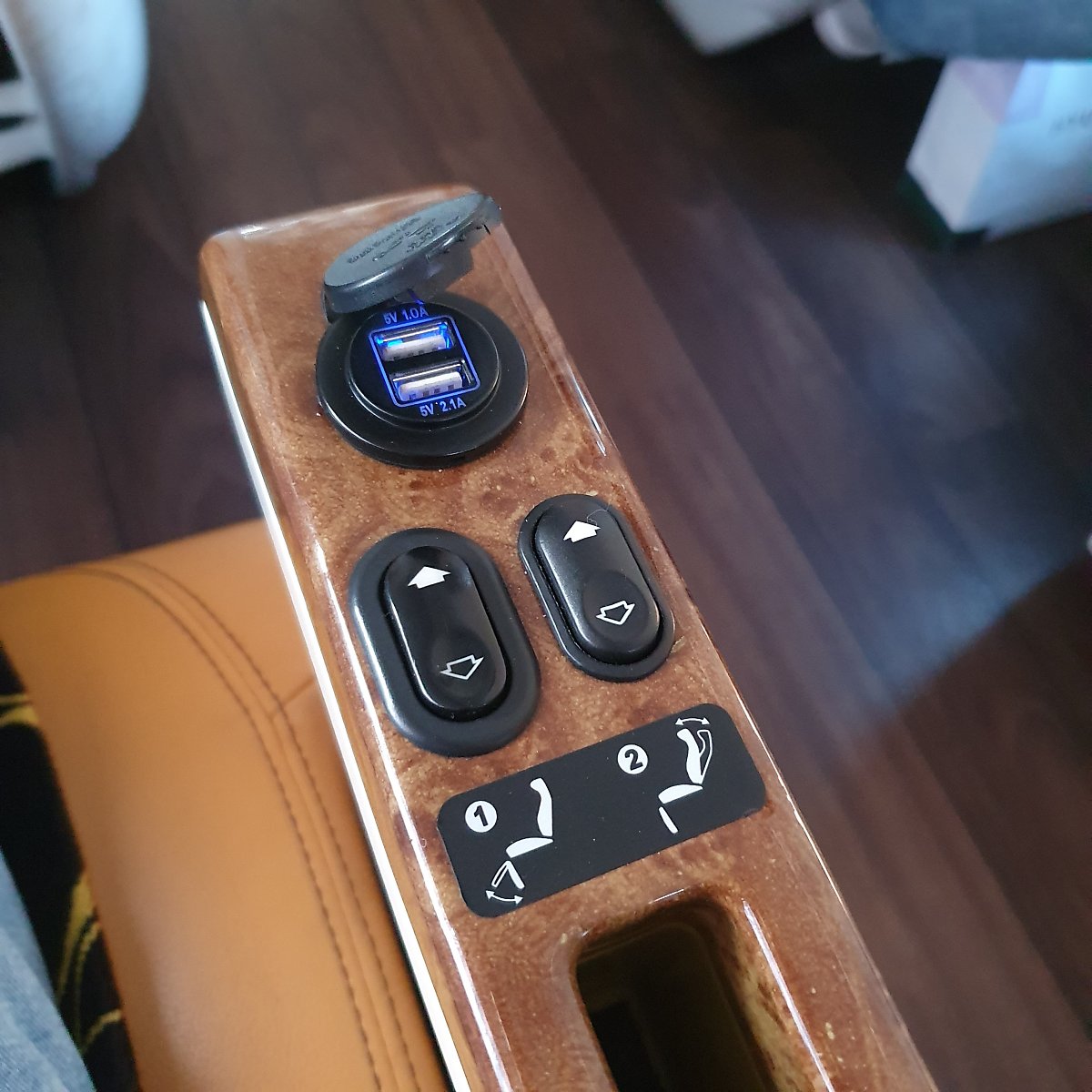 화살표 버튼은 좌석 컨트롤 버튼인데 1번 하얀 버튼을 누르면 받받침대가 위로 올라가고, 아래 버튼을 누르면 아래로, 2번 버튼은 윗 버튼이 눕는 버튼, 아래 버튼이 세우는 버튼이었어요.