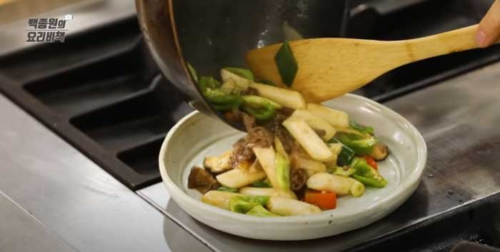 - 떡이 말랑해지면 약불로 뭉근하게 졸인다. 진한 색을 원한다면 볶음용 노두유나 카라멜을 넣을 것. ⑦ 떡이 완전히 익으면 청피망, 대파, 후춧가루, 참기름을 넣고 잘 섞어준다.